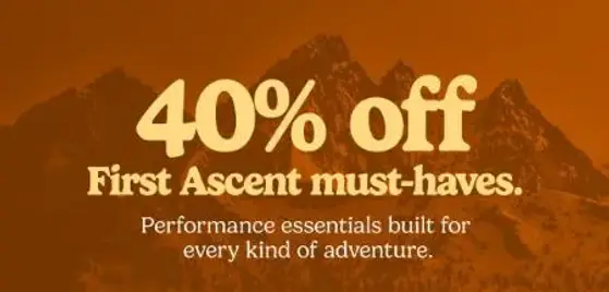 Stop by and take 40% off on First Ascent must-haves in store for a limited time.