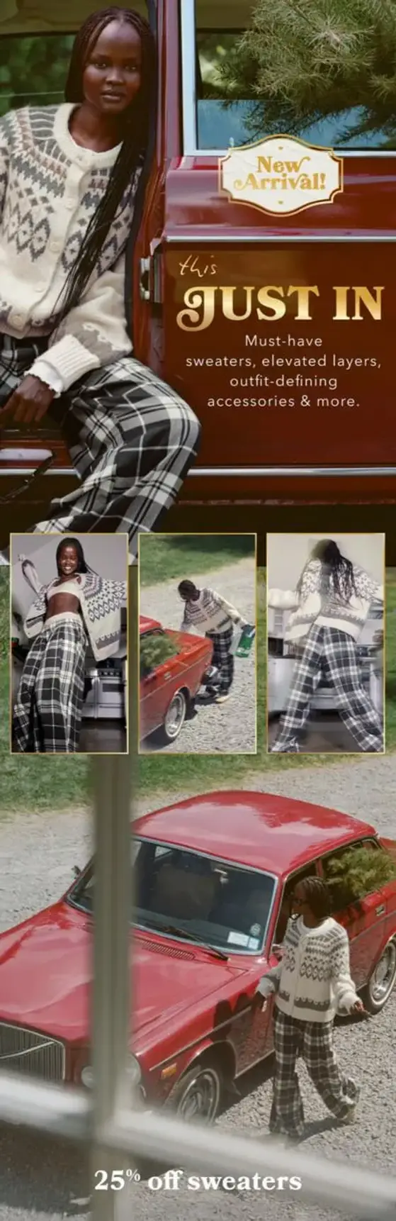 Get it now! Shop in store and get 25% off sweaters.