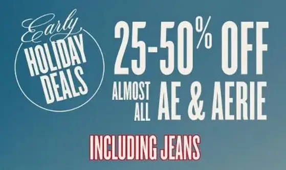 Don't miss out! Shop in store and get 25-50% off almost all AE & Aerie including jeans.