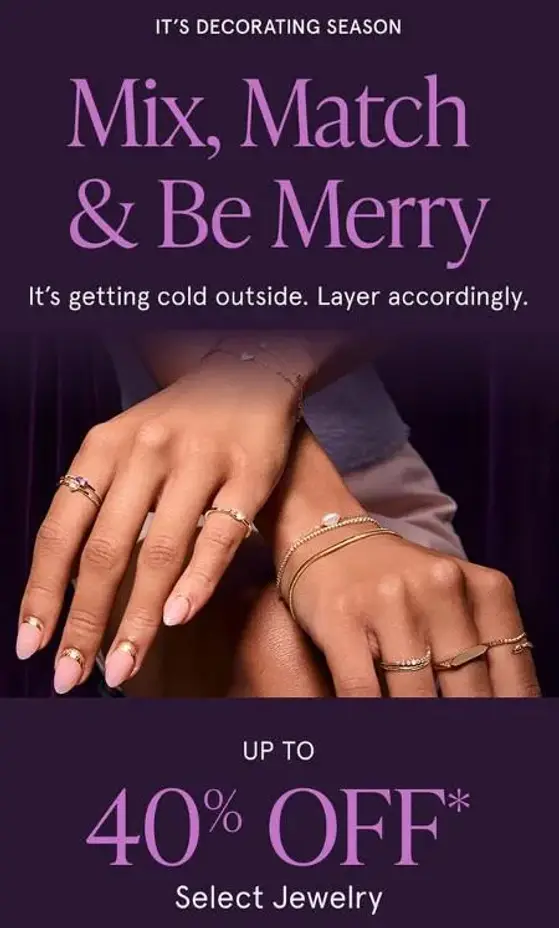 Mix, match, stack & be merry! Shop in store and get up to 40% off select jewelry.
